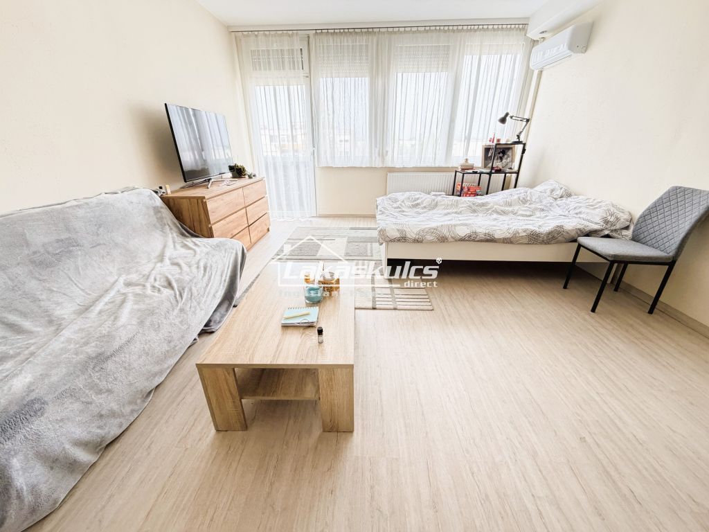 Az ingatlan jelenlegi elosztása: amerikai konyhás nappali + 1 szoba, azonban könnyedén nappali + 2 szobássá alakítható, így ideális családok vagy befektetők számára is.